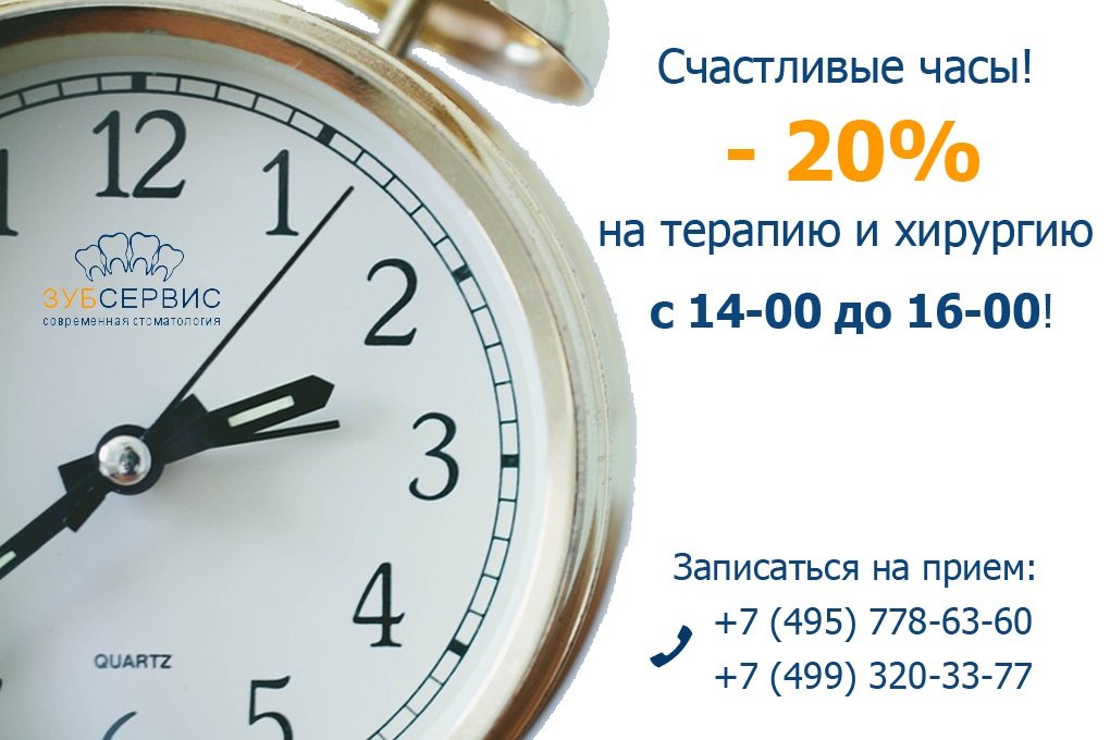 Акция "Счастливые часы"! С 14.00 до 16.00 скидка 20%